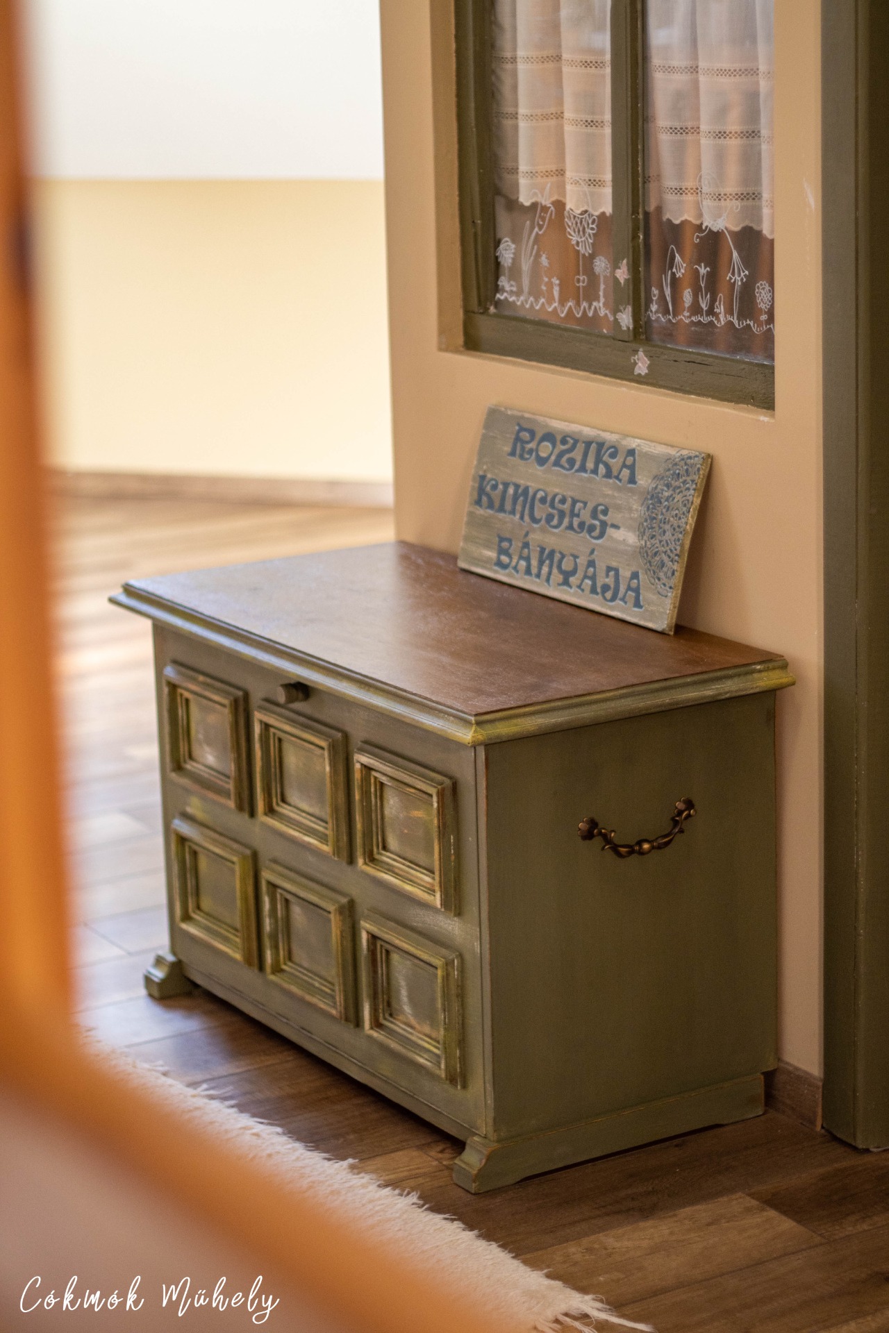 A ládika előrefele nyíló ajtaja 3polcos tárolót rejt.